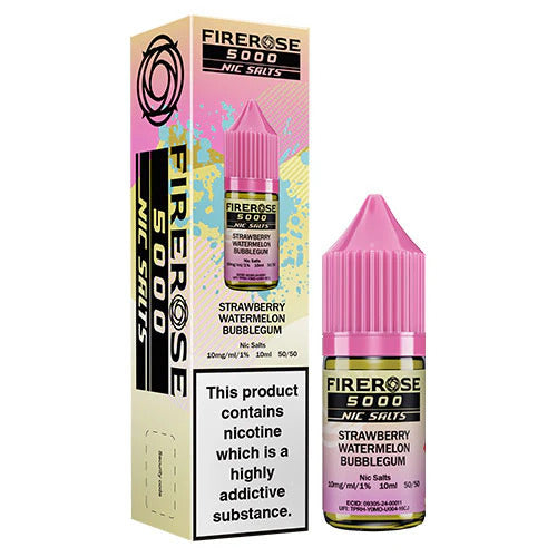 Strawberry Watermelon Bubblegum nic salt e-liquid by Elux Firerose is a fruity confectionery blend. From your first puff to your last sweet strawberry and crisp watermelon notes meet a sugary bubblegum flavour.